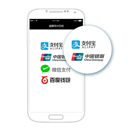 远程支付平台,为iOS/Android原生/H5 App提供支付解决方案:支持微信支付、支付宝支付、银联手机支付、百度钱包等。
